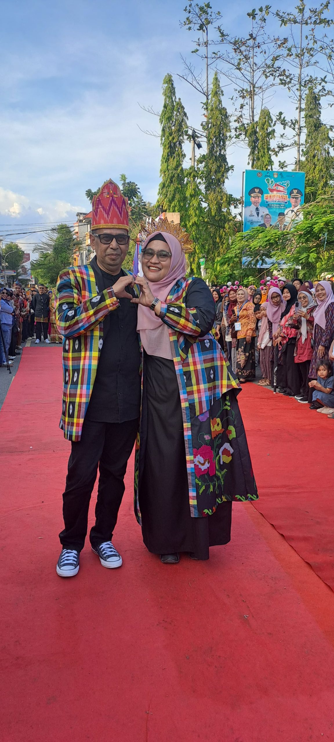 Sorak dan tepuk tangan penonton pun mengiringi langkah mereka. Aura percaya diri dan pesona kain tenun sutera Wajo terpancar kuat, membuat suasana karnaval seakan menghipnotis ratusan pasang mata yang memadati venue acara.