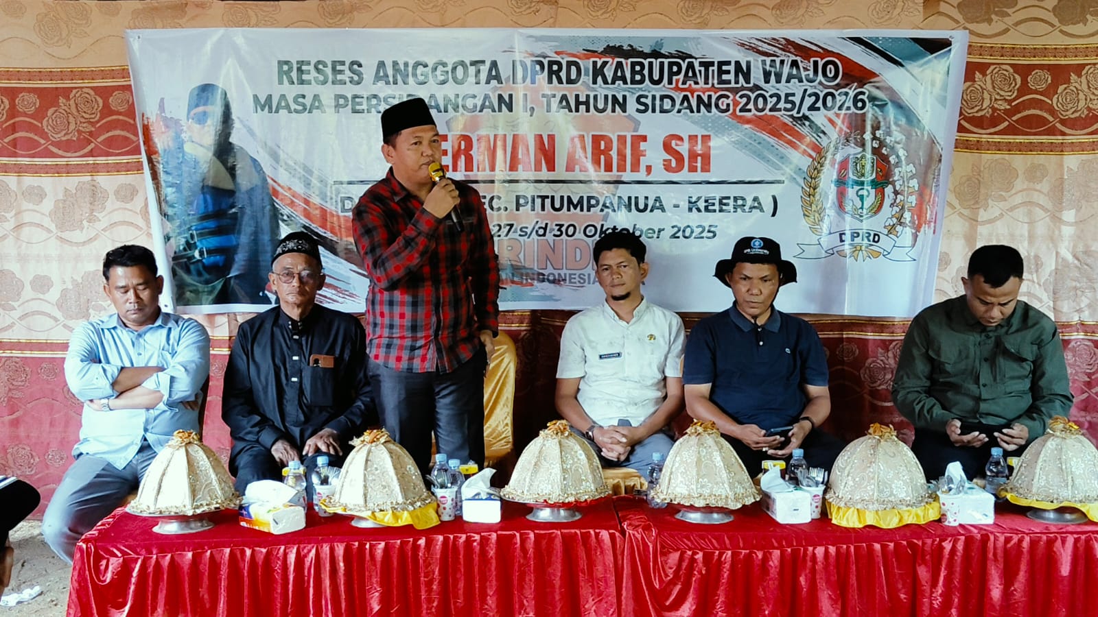 WAJO — Ketua Komisi II DPRD Kabupaten Wajo, Herman Arif SH, menggelar kegiatan reses masa persidangan I tahun 2025/2026 di Desa Padangloang, Kecamatan Pitumpanua, Kamis (30/10/2025).