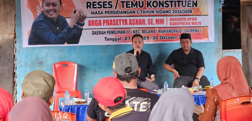 WAJO – Anggota DPRD Kabupaten Wajo dari PKS, Arga Prasetya Ashar, kembali menyapa masyarakat di daerah pemilihannya lewat agenda reses di Desa Ongkoe, Kecamatan Belawa, Rabu (30/10/2025). Dalam pertemuan yang berlangsung hangat itu, Arga tak hanya membawa kabar gembira soal pembangunan infrastruktur di Kecamatan Belawa, tetapi juga harus mendengar langsung keluhan warga mengenai tanggul jebol, banjir, dan bantuan pertanian yang mandek.