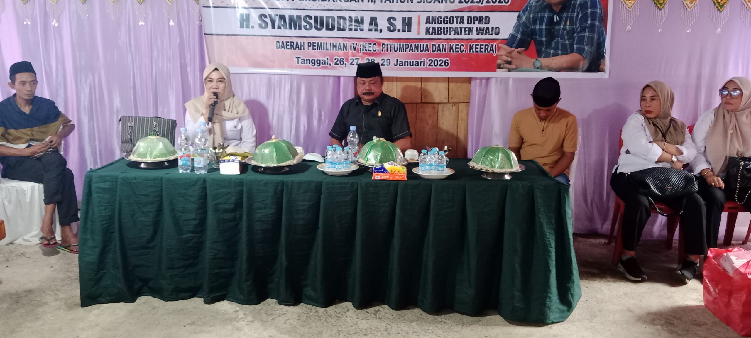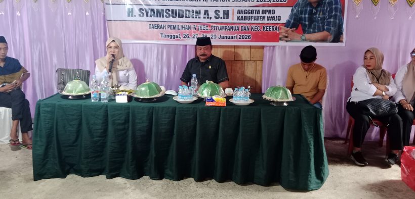 WAJO – Anggota DPRD Kabupaten Wajo, H. Syamsuddin Ahmad, S.H., sukses menggelar agenda Reses Masa Persidangan II Tahun Sidang 2025/2026 yang dipusatkan di Kecamatan Keera, Rabu (28/1/2026). Dalam pertemuan tersebut, legislator partai Gerindra ini menyerap sedikitnya 16 poin aspirasi krusial yang mencakup infrastruktur, pendidikan, hingga isu sosial.